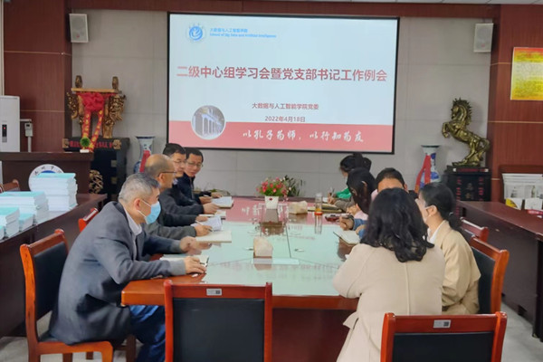 4月18日下午,大数据与人工智能学院在博奕南一楼会议室召开二级中心组学习会暨党支部书记工作例会,研究部署全面从严治党工作,二级中心组成员、各党支部书记参加会议,会议由学院党委书记宛明高主持。