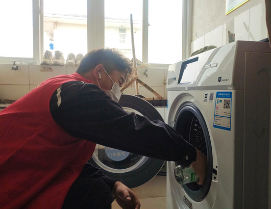 根据志愿服务队前期调研,志愿者进行了分组:公共洗衣机清洗组、宿舍空调滤网清洁组、公共区域清理组、公共厕所清洁组。志愿者们来到学生宿舍分工明确,默契搭配,为同学们解决了宿舍设施和公共卫生的清洁问题。