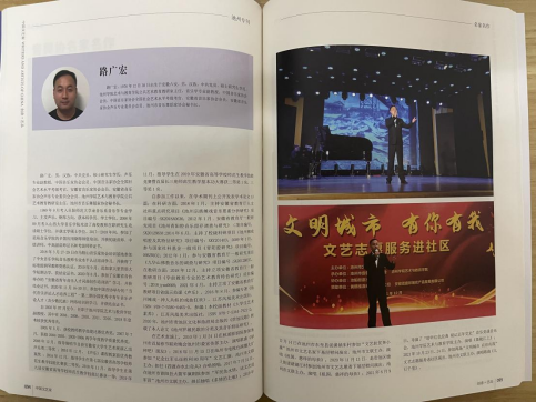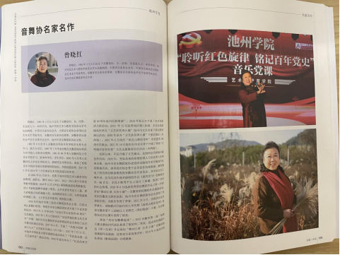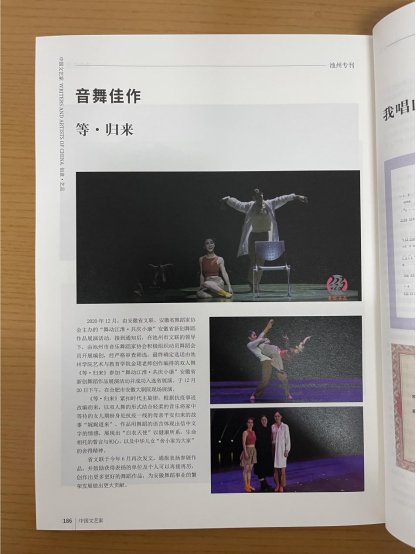 为认真贯彻落实习近平总书记关于文艺工作系列重要论述和省、市关于文艺大发展大繁荣的要求,积极响应广大文艺工作者对于展示平台的迫切需求,近期出版了《中国文艺家》(池州专刊)。艺术与教育学院副院长曾晓红、艺术与教育学院公共艺术教研室主任路广宏作为艺术名家以及艺术与教育学院教师金珺的原创舞蹈作品《等归来》被收录刊登。