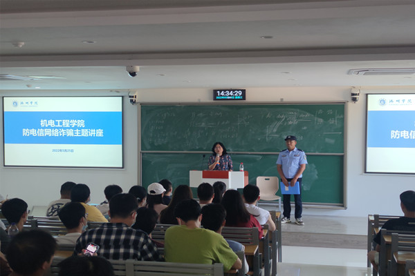 一直以来,机电工程学院高度重视防范电信网络诈骗的宣传教育,此次讲座不仅使同学们了解掌握了常见的电信网络诈骗类型,还进一步提高了同学们对电信网络诈骗的防范、鉴别和自我保护能力。