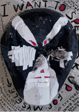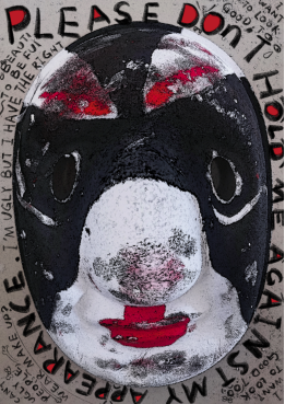 陈杰的作品《Ugliness is not my fault》通过对面具的变形挤压,表现了主题,希望引起人们对“妇女”这一群体的关注,杜绝暴力侵害行为的发生。