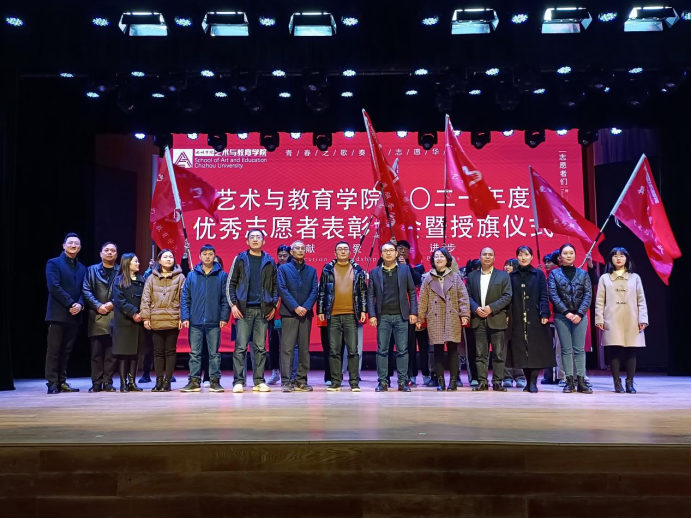 为了进一步弘扬新时代雷锋精神和志愿服务新风,培养青年大学生“关爱他人、无私奉献、立志成才”的美好品质,2021年12月1日,艺术与教育学院志愿者表彰大会暨授旗仪式在音乐厅举行。校团委副书记李旋宇、艺术与教育学院党委书记杨静、院长魏鸿飞、党委副书记周建国,院系各学生党支部书记、专职辅导员、志愿服务队指导老师出席了本次大会。大会由艺术与教育学院团委副书记刘书宜主持。