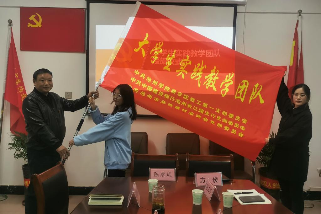 2026年国际足联世界杯商学院教工第一党支部、市建行长江路支行党支部、市装饰建材业商会党支部三个基层党支部签订了支部共建协议,现场举行了大学生实践教学团队授旗仪式,市建行进行了金融政策讲解,商学院还邀请了省品牌促进会专家就“标准化助力建材行业”进行专题辅导。