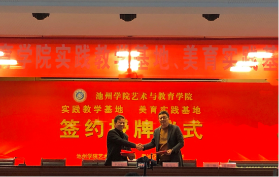 11月15日下午,在平天湖小学多功能厅,艺术与教育学院与该校共同举办了实践教学基地、美育基地共建签约暨挂牌仪式。贵池区教体局副局长刘若冰、艺术与教育学院党委书记杨静出席活动并讲话,艺术与教育学院院长魏鸿飞、副院长曾晓红,贵池区教体局教研室主任鲍习中、平天湖小学校长章劲松、艺术与教育学院美术学教研室主任方向等出席了活动。