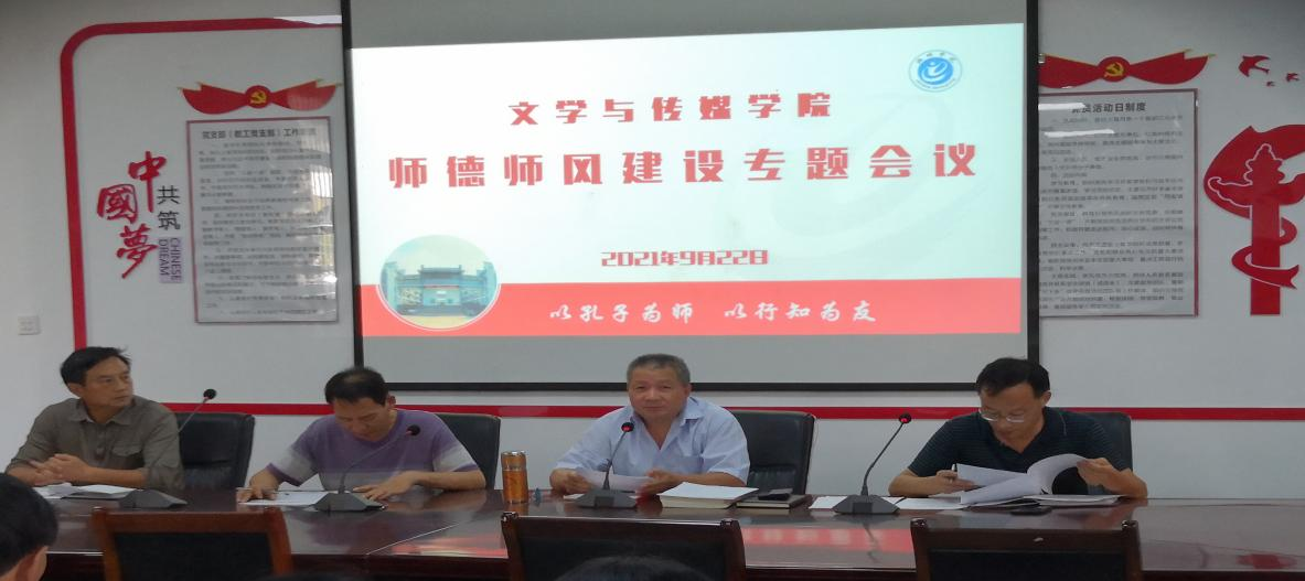 为加强师德师风建设,文学与传媒学院于2021年9月22日下午在博物楼第一会议室召开了师德师风建设专题会议,会议由学院党委书记许思友主持,学院全体教职工参加了会议。