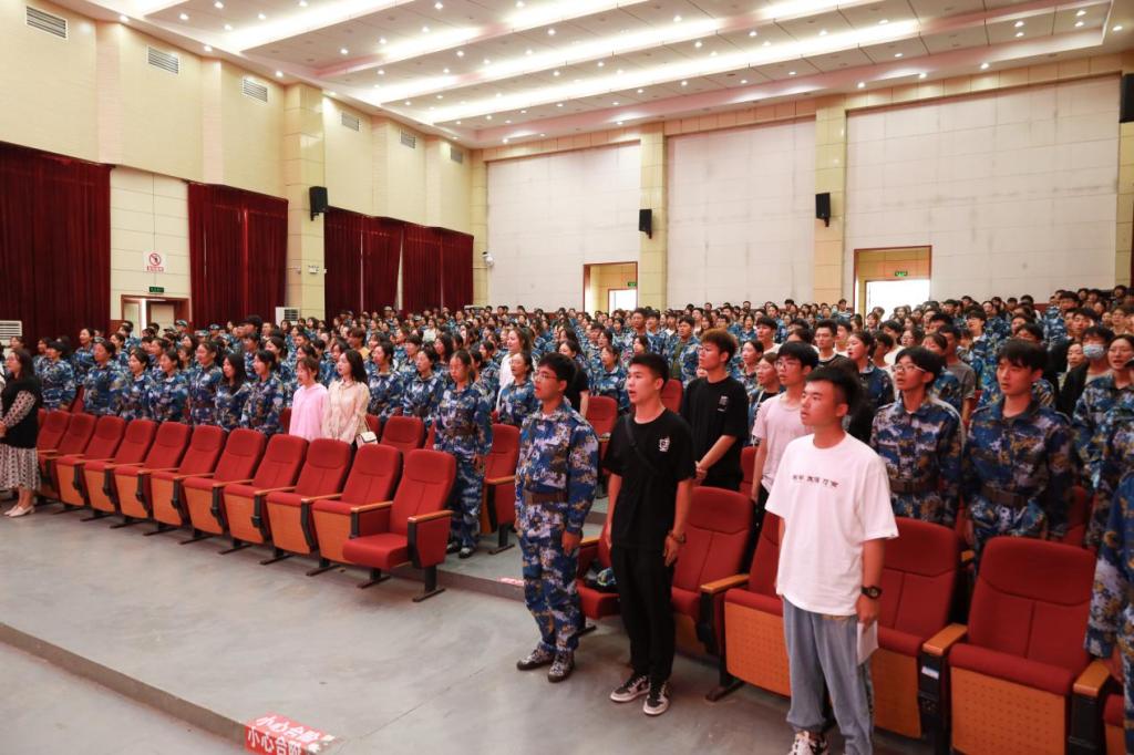 新生见面会在庄严的国歌声中拉开帷幕。