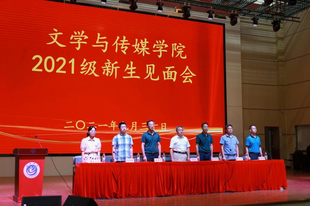 9月30日上午,文学与传媒学院2021级新生见面会在博古礼堂举行,院党委书记许思友、院长刘光明、院党委副书记章礼云、副院长高祥华、教师代表陈春雷、方天宝、朱丽兰以及大一新生辅导员出席见面会。会议由章礼云主持。