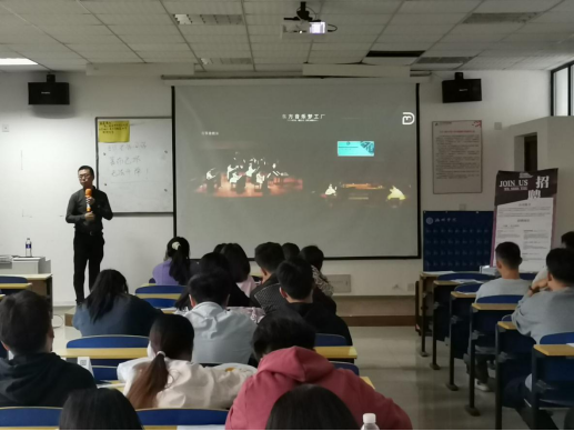 三家招聘单位分别通过宣传视频、PPT、现场介绍等方式对本公司的公司概况、公司环境、发展优势以及招聘岗位和福利待遇等方面进行了宣讲。