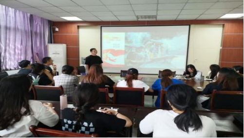 学生预备党员任春香讲述的是以靳尚谊的作品《送别》,这副作品以长征为背景,描绘了长征精神是不畏艰难,不怕困苦,不怕流血牺牲的革命英雄主义精神,弘扬民族精神,为社会的全面进步提供精神动力,使我们正确认识历史,珍惜今天来之不易的和平生活。