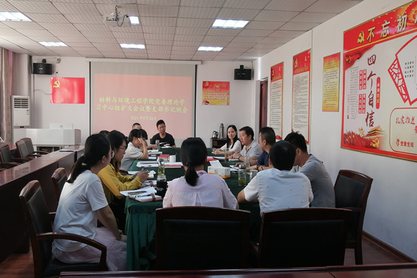 9月26日下午,材料与环境工程学院在会议室召开党委理论学习中心组扩大会议暨支部书记例会。学院党委理论学习中心组成员、团委书记、实验室主任、行政办负责人以及党支部书记(教研室主任)等参加会议。院党委书记何贵林主持会议。