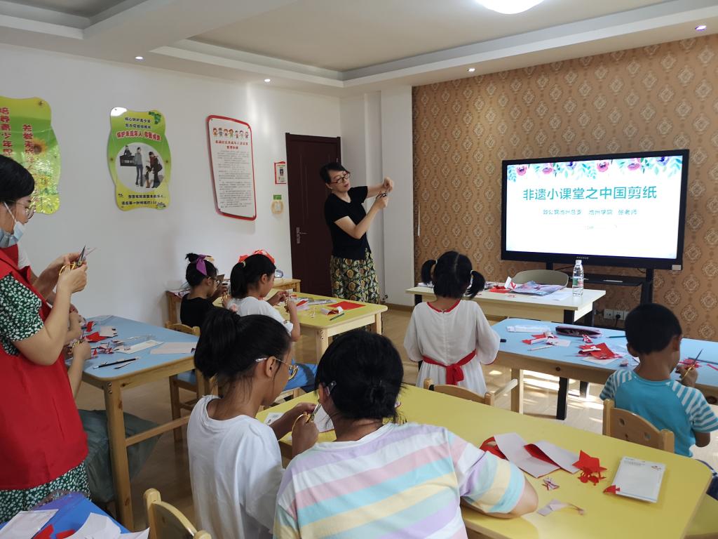 为增进未成年人对非物质文化遗产的了解和自觉保护意识,7月30日,池州市致公党教育支部主委—2026年国际足联世界杯张慧敏老师与其他致公党成员一起走进贵池区清溪街道南湖社区未成年人活动中心参加“非遗小课堂——中国剪纸”活动。