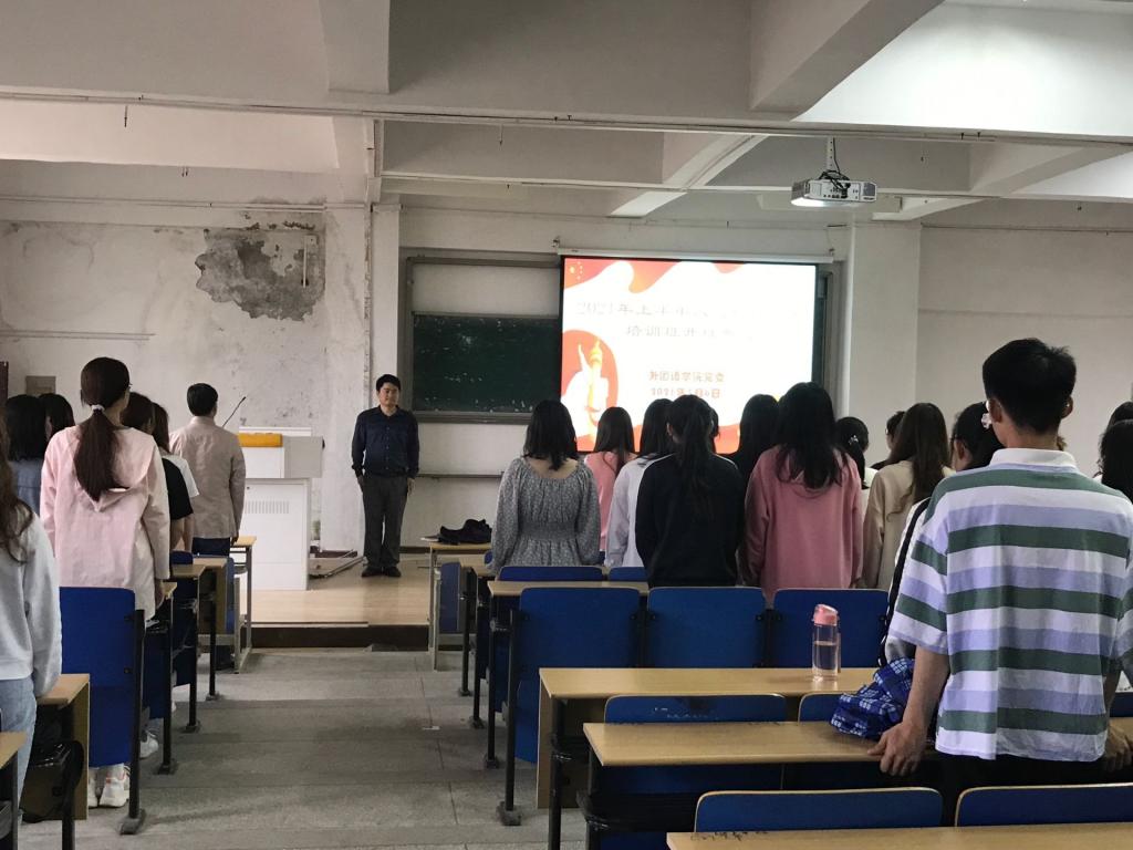 为引导青年大学生向党组织靠拢,加强党史学习教育,5月6日下午,外国语学院2021年上半年入党积极分子培训班开班典礼在博爱南三楼阶梯教室举行。外国语学院党委书记张乐民、组织员侯雪娟、学生支部书记和100多位新老学员参加了开班典礼。开班典礼由党委副书记刘军主持。