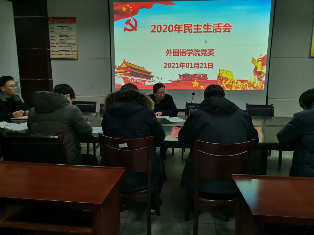 1月21日下午,外国语学院党委在会议室举行2020年民主生活会。校党委委员、副校长汪贤才到会指导,外国语学院班子成员参加了会议,科级干部、各支部书记列席会议。会议由外国语学院党委书记张乐民主持。