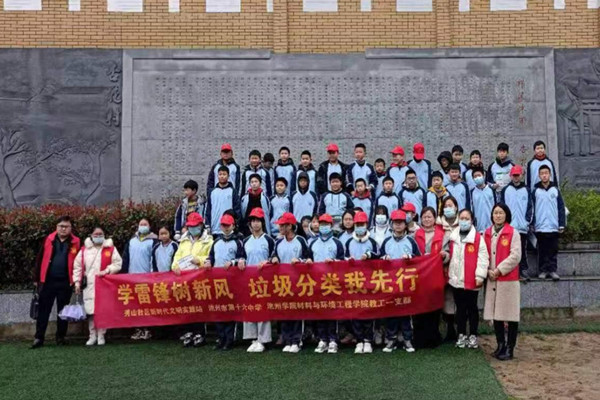 3月5日是学雷锋活动日,材环学院教工一支部与池州市贵池区池阳街道秀山社区委员会联合开展志愿服务活动,与池州市第十六中学的同学们开展了垃圾分类宣传和实践的活动。