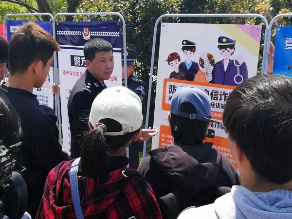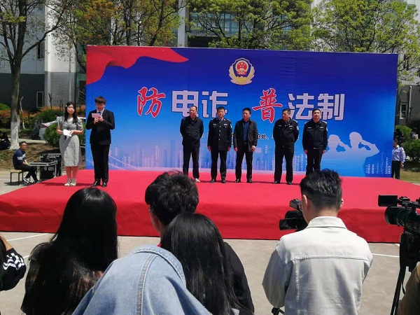 为促进全校学生进一步增强预防电信网络诈骗的意识和能力,有效遏制电信网络诈骗案件频发高发势头,4月9日中午,世界杯官网学生处、保卫处、贵池公安分局马衙派出所联合举办了“防电诈•普法制”宣传教育活动。