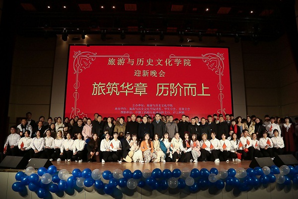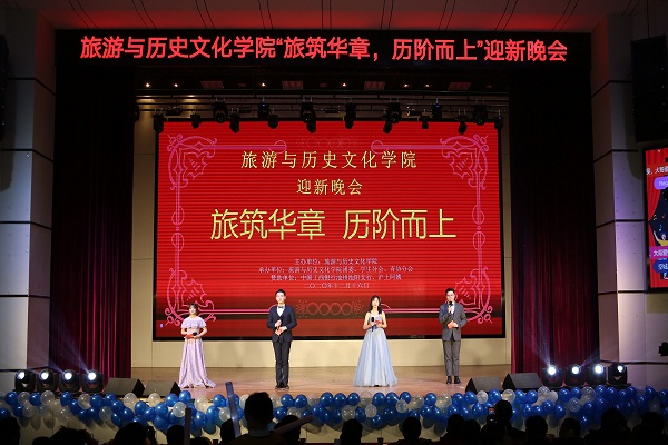 12月16日晚,旅游与历史文化学院“旅筑华章,历阶而上”迎新晚会在博古礼堂隆重举行。校党委书记孙晓峰、校长柳友荣出席晚会,校党委委员、组织部部长李恕宏、校团委书记程海峰,学院领导班子及师生代表欢聚一堂,共享视听盛会。