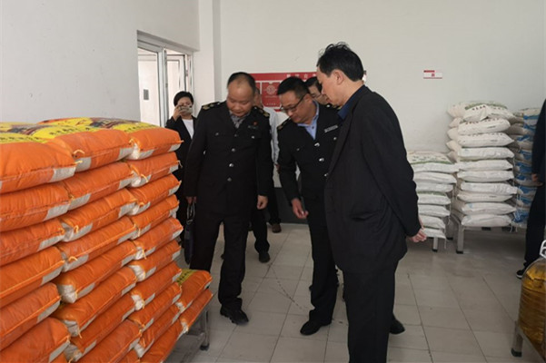 在食堂,方锡友一行认真查看了食品储存室物品摆放、食堂清洁卫生、购物登记台账、食品留样情况等,还详细了解了食材采购途径、师生就餐情况等。