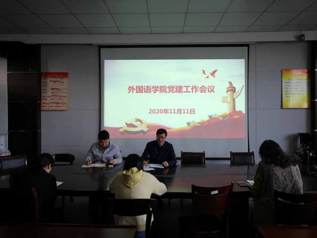 为落实全面从严治党要求,切实加强基层党组织建设,充分发挥基层党组织战斗堡垒作用,11月11日上午,外国语学院党委在会议室举行党建工作会议。参加会议的有外国语学院党委委员、各支部书记。会议由外国语学院党委书记张乐民主持。