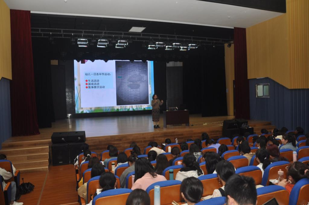 向阳幼儿园胡金枝园长在以《幼儿园家园共育的意义及策略》为题的讲座中,介绍了向阳幼儿园开展的多种形式的家园共育案例。向同学们强调了家长也是重要的教育资源,教师和家长之间的合作与配合,直接影响着幼儿的发展。幼儿园的教育行为吸引家长参与到幼儿园的活动中,家长感受到因他们的参与使孩子的进步更明显,孩子的进步又带动了家长的积极性,家长的积极参与又激励了教师的工作热情,实现了教师、幼儿和家长之间的三方互动,形成家园共育的良性循环。