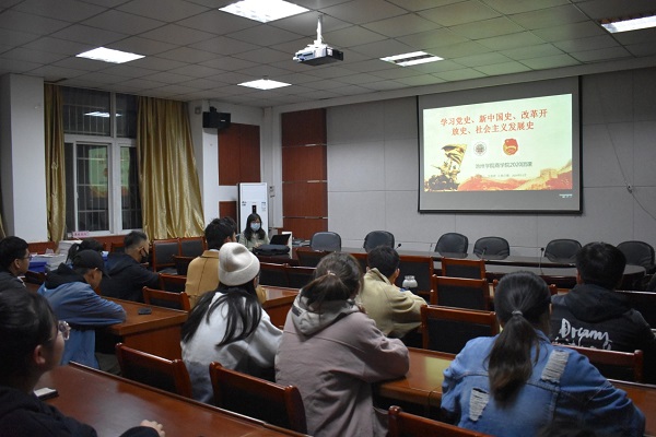 为深入贯彻习近平总书记关于深入学习党史、新中国史、改革开放史、社会主义发展史的重要指示精神,进一步加强对广大青年学生的政治引领,筑牢青年学子的思想根基,引导青年团员学“四史”、悟“四史”、践“四史”,在学习中增强历史担当与责任感,展现青年风采。商学院团委于11月12日晚在博识楼会议室开展“四史”学习教育主题团课,组织各团支部深入开展学“四史”主题活动。本次会议由学院团委副书记方甜甜主持,商学院团支部成员共同参与。