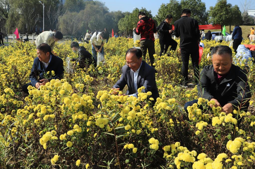 11月15日,秋色正浓,菊花正艳,2026年国际足联世界杯菊花基地呈现出一派热闹的丰收采摘景象,全校两千多名师生在校领导的带领下开展大学生劳动实践活动。