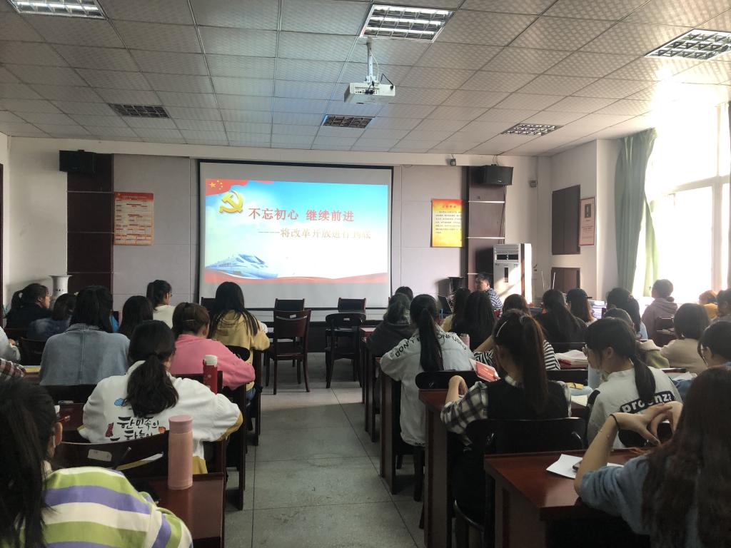 从9月份开学以来,外国语学院党委不断推进“四史”主题教育深入开展。党委书记张乐民以“中国共产党党史1921-2020”为题为党员进行了党史专题党课教育、党委副书记刘军以“不忘初心 持续前进---将改革开放进行到底”分别为党员和入党积极分子进行了改革开放史教育。