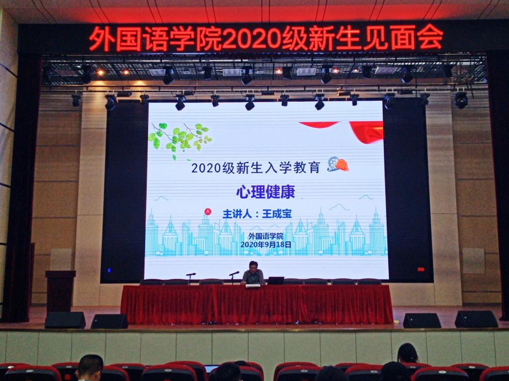 专职辅导员王成宝老师以“心理健康”为题,教育新生要学会相互包容、融入新的集体,尽快适应大学生活。