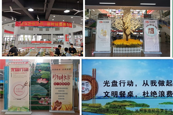 醒目的标识和横幅和宣传语,时刻提醒广大师生从我做起,从点滴做起,争做“光盘侠”。