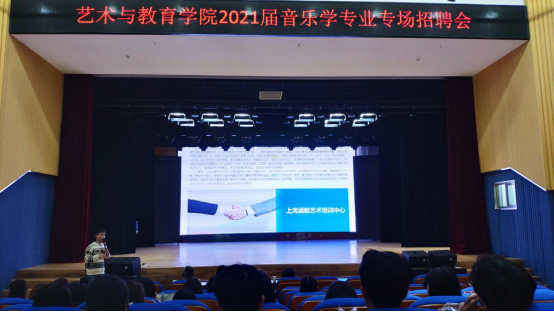 就业是最大的民生。为做好艺术与教育学院2021届毕业生就业工作,克服新冠肺炎疫情带来的不利影响,提升毕业生的就业数量和质量。10月20日下午和10月21日上午,艺术与教育学院在音乐厅举办了两场2021届音乐学专业专场招聘会。参加本次招聘会的企业为上海涵皓艺术培训中心有限公司和南京琴星艺术培训有限公司,音乐学专业98名毕业生参加了招聘会。