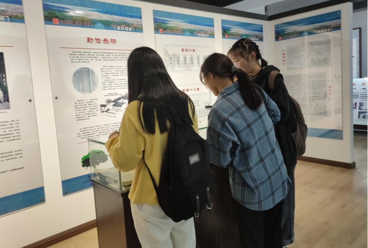 此次活动由新生班级辅导员带队,带领同学们进入家风馆并为同学们讲解家风的重要性。同学们通过家风馆展示的优秀家风家族人物、家规家训等,充分领略到优良家风的传统美德。参观的同时,同学们热情参与,积极交流讨论对于家风的认识和参观家风馆的感受。