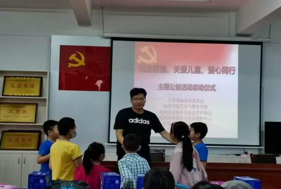 5月30日上午,艺术与教育学院联合团市委、市救助站、市未成年人社会保护协会等单位在杏花村街道杜坞社区开展“抗击疫情、关爱儿童、爱心同行”进社区主题党日活动,为社区困境儿童捐助口罩、学习用品和生活用品等。