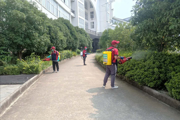 学校秋季开学前期,为了积极做好预防传染病,强化病媒生物防制工作,确保学校师生卫生健康,8月27日—29日后勤管理与基建处联合安徽百分环境发展有限公司的专业人员对校园进行病媒生物防制。主要涉及到校园内的灭四害工作,对校园内的公共区域、宿舍以及生活区进行认真细致的喷洒、投饵,并对前期所做的捕蝇笼,毒饵站等设施进行巡查、维护,并再次投放饵料。