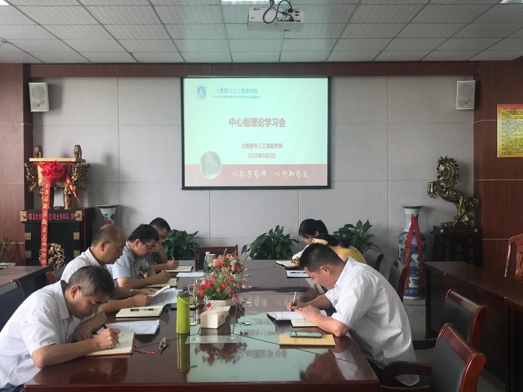 9月2日上午,大数据与人工智能学院召开二级中心组理论学习会,二级中心组全体成员参加,学院党委书记宛明高主持学习会。