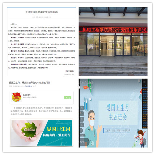 今年4月是第32个爱国卫生月。为深入贯彻落实习近平总书记关于做好新冠肺炎疫情防控和爱国卫生运动系列重要讲话精神,大力开展爱国卫生运动,为全面打赢新冠肺炎疫情阻击战奠定坚实基础。机电工程学院4月中上旬以来开展了系列活动。