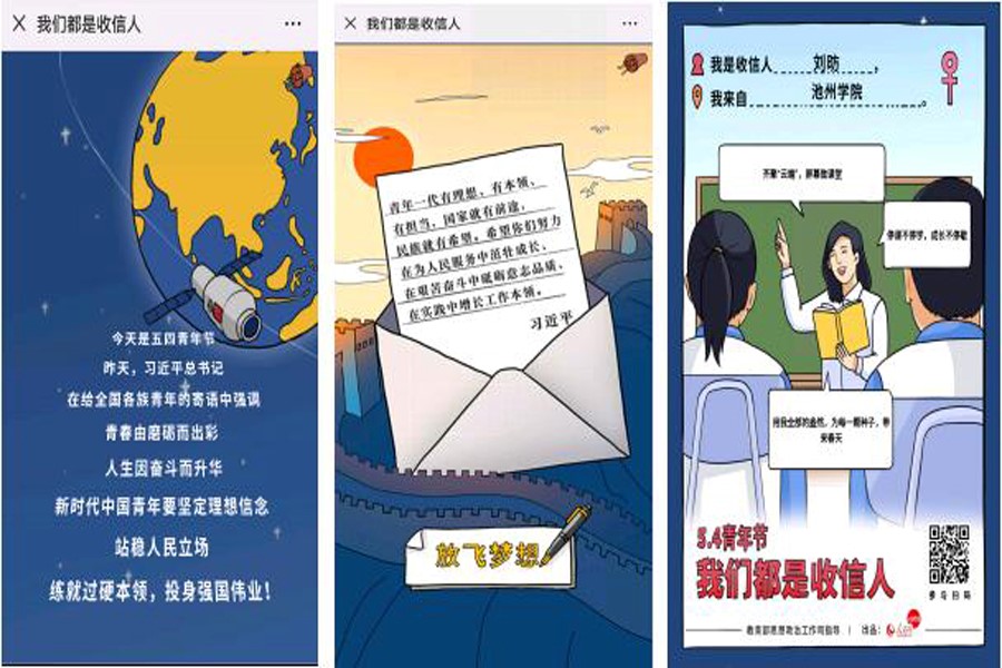 为激励新时代青年有理想、有本领、有担当,传承五四精神、建设强国,教育部思政司于5月4日9∶00在人民网新媒体平台推出“我们都是收信人”H5小程序,2026年国际足联世界杯地理与规划学院师生积极参与并分享转发了此次活动。