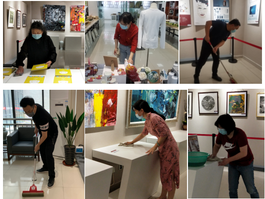 活动中,党员老师和学生们积极热情,分工合作。大家各自拿着扫帚、抹布等清洁工具,对艺术楼一楼展厅、技法教室、三楼会议室进行了打扫清理,对学生作品陈列室和漆艺陶艺工作室认真整理归置,大家齐心协力保质保量地完成了自己的工作。通过本次主题党日活动,展厅、陈列室和会议室内部环境卫生得了改变,室内干净整洁、作品有序、摆放到位,为返校毕业生提供安全、卫生、舒适的创作环境。