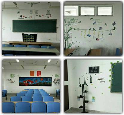 别具匠心的教室装饰、人文加专业知识相融合的班级logo、励志的课堂手机管理标语、图文并茂的黑板报让博学楼的教室焕然一新。