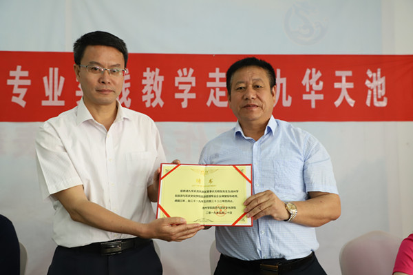 活动开始前,旅游与历史文化学院院长胡文海为九华天池风景区董事长刘根友、伍婷婷、李青玲等颁发聘书,聘任三人为旅游管理专业行业导师。