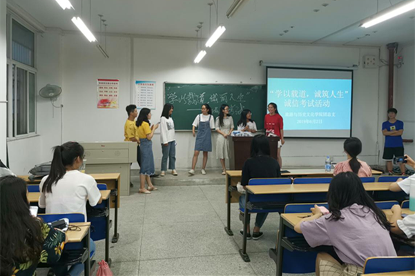 为倡导文明新风,引导大学生树立诚信意识,增强社会责任感,做求真务实、知行合一的大学生。旅游与历史文化学院于515日-62日开展了“学以载道、诚筑人生”诚信教育系列活动。