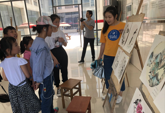 天力妈妈儿童关爱中心党支部一行按照之前设计好的路线,分别参观了美丽的校园、图书馆的借阅室、美术楼的展厅等。在借阅室,小学生们徜徉在书的海洋里激动万分。在展厅,他们对一件件精美的美术作品惊叹不已,流连忘返。