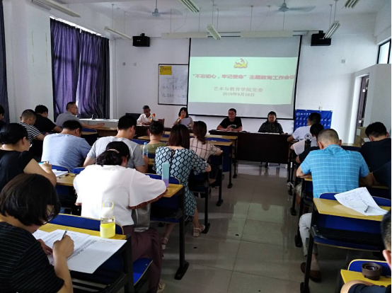 9月18日下午,艺术与教育学院在美术楼302教室召开“不忘初心、牢记使命”动员部署会,全体教师党员和部分学生党员代表参加了会议,会议由院党委书记杨静主持。