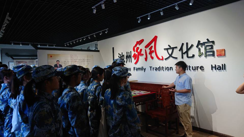 新生们整齐统一着军训服,井然有序地在辅导员的带领下依次进入家风馆进行参观。党委副书记刘军要求大家,要认真学习好家风,传承中华民族传统美德,并在今后大学生活中积极践行,促学风、正校风。