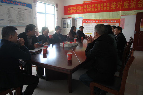 11月9日,旅游与历史文化学院党总支与池州市马衙街道杨安社区党委开展结对共建活动。旅游与历史文化学院党总支书记何家荣、院长胡文海、党总支副书记程晓丽等与杨安社区党委书记董秀萍等班子成员参加了结对共建启动仪式,并举行了座谈。