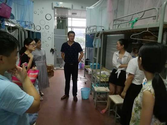 6月27日晚,外国语学院党总支书记张乐民、副书记冯淑慧、院长助理刘军以及2018届毕业班辅导员一行前往毕业生宿舍,看望2018届毕业生并送去慰问与祝福。