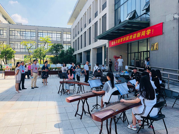 同时为了更好的服务于新生,增加他们之间的了解,音乐与教育学院提前准备了照片墙,将新生所提供的生活照展示在此墙上。为了使新生够直观的了解自己的专业所学,音乐与教育学院团学青成员将一些手工作品进行展览,供新生和家长观赏,除此之外,音乐与教育学院民乐团拿出古筝、二胡等乐器为新生表演,展示专业风采。迎新工作虽辛苦,但志愿者们热情高涨,不畏炎炎烈日,耐心为新生引路解惑,保持高昂的工作热情。