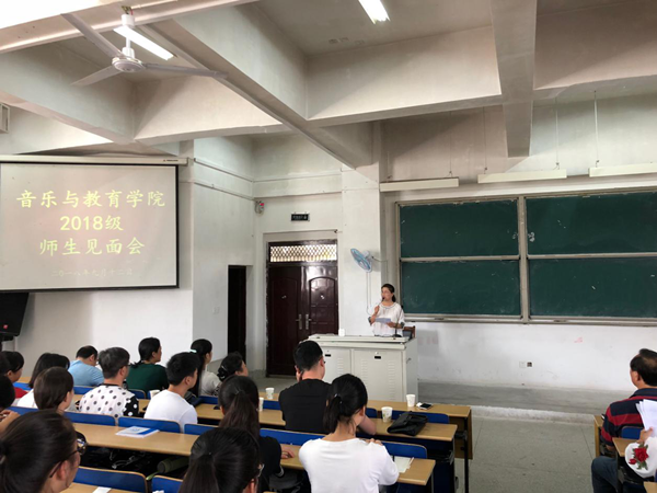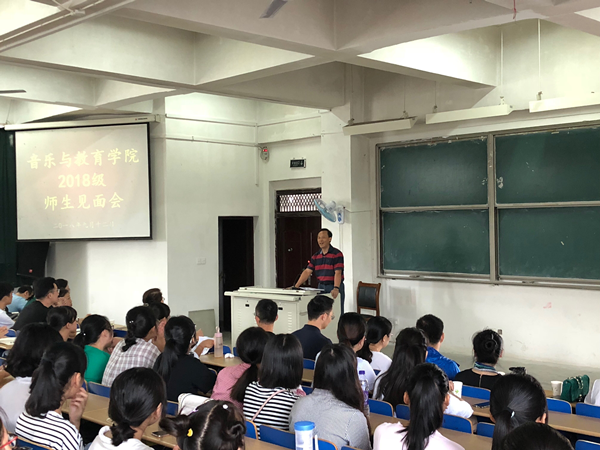 9月12日上午,音乐与教育学院2018级新生见面会于博弈楼一楼阶梯大教室顺利举行。党总支书记程绪彪、院长吴小贻、副院长曾晓红、院长助理黄国萍出席见面会。各专业教师携全体18级新生参加。见面会由程绪彪主持。