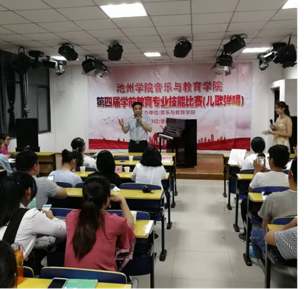 音乐与教育学院首届学前教育专业活动月赛事连连。继儿童舞、儿童故事、儿童画和手工作品等系列专业技能比赛后,该院于5月24晚在音乐楼四楼合唱教室又举办了学前教育专业儿歌弹唱比赛。校长柳友荣作为专家评委出席并观看了整场比赛。