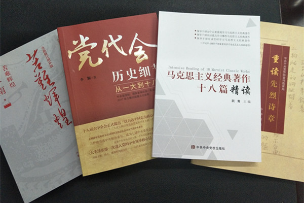 为提高党员的党性修养,增强党员的政治理论水平,加强标准化基层党组织建设。旅游与历史文化学院党总支精心遴选购置了《党代会历史细节——从一大到十八大》、《马克思主义经典著作十八篇精读》、《苦难辉煌》、《重读先烈诗章》四本著作。
