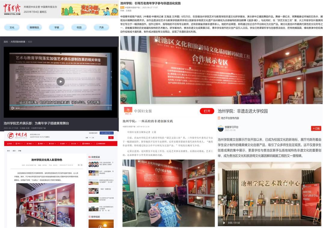近年来,学院依托艺术俱乐部、非遗大师工作室、校企(地)合作基地等平台,与池州市文旅部门及多家企业签署合作协议,通过校地联动、校企协同,解码文化基因,反哺乡村振兴,助力非遗从校园走向景区、街道、乡村,为池州文旅注入青春动能,推动教学与市场贯通。学院将持续深化美育创新,以文化传承赋能区域文旅升级,以艺术教育滋养乡村振兴,为服务地方高质量发展注入持久动能。