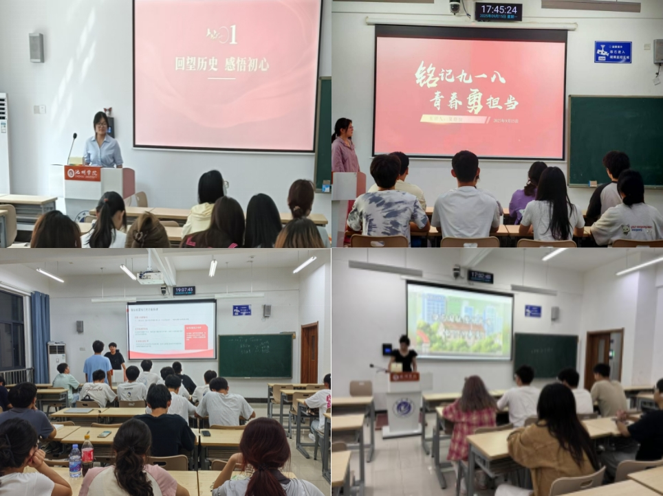 文学与传媒学院2024级广告学2班团支部开展“铭记‘九一八’ 青春担使命”主题团日活动,团支书结合珍贵历史图片与文献资料,带领全体团员重温“九一八”事变的历史背景、事件经过及深远影响,并围绕“如何传承和弘扬伟大抗战精神”展开深入讨论,进一步深化了团员青年对革命历史的认知,增强了爱国情怀与责任担当。材料与环境工程学院2024级新能源材料与器件2班团支部开展“铭记历史 勿忘国耻”主题团日活动,深入学习杨靖宇、赵尚志等抗日志士的英雄事迹,深切缅怀革命先烈,并开展历史知识竞答,引导团员青年深刻领会历史教训,自觉将爱国热情转化为钻研专业知识、服务国家科技自立自强的实际行动。机电工程学院2024级光电信息科学与工程班团支部开展“铭记‘九一八’国耻,传承红色基因”主题团日活动,通过历史事件讲解、集体观看纪录片《铭记九一八》、小组代表发言等环节,既增强了团员青年的历史责任感和使命感,又提升了团支部的凝聚力与向心力。